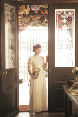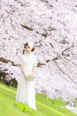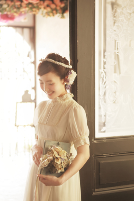 レースを使ったクラシックで清楚なデザインのドレスです。