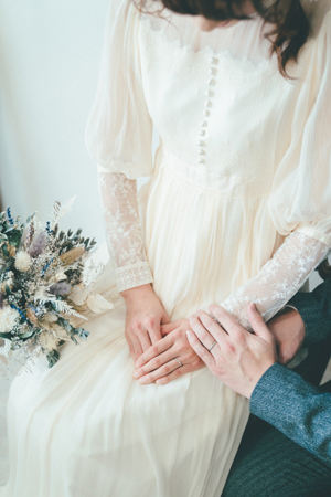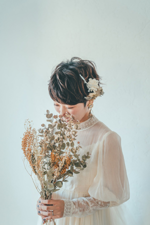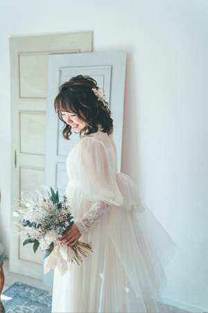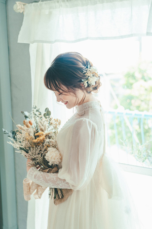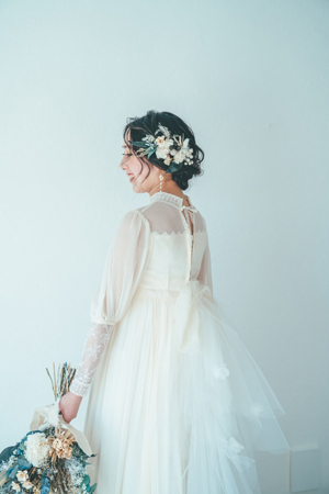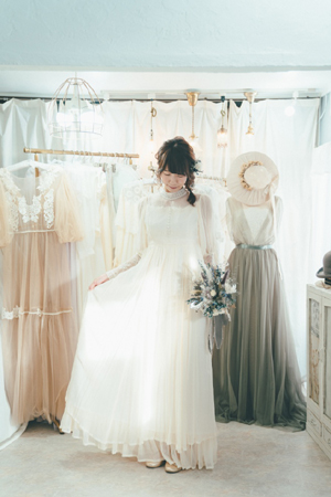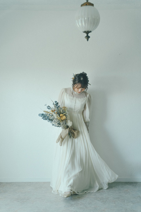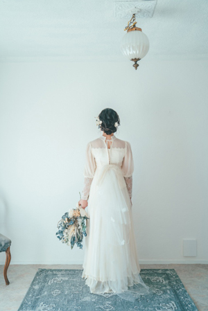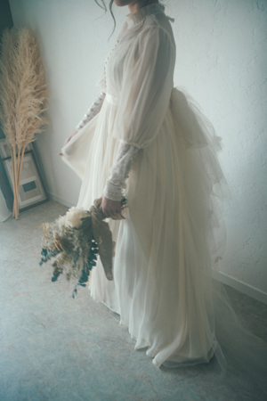 アイボリー色のシルク素材のナチュラルな印象のドレスです