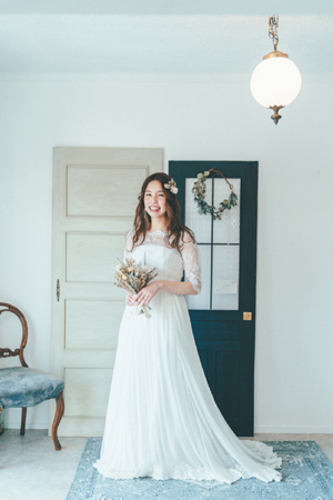 繊細なレースがお肌に透けて美しく洗練された雰囲気のドレスです