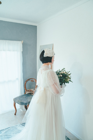 ヴィンテージライクなデザインの柔らかなチュール素材のドレスです