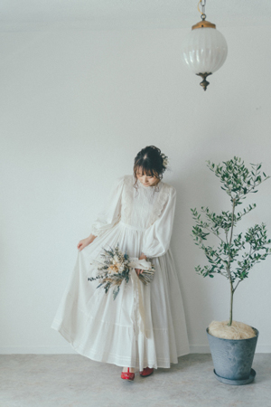 ふわふわの赤ちゃん服のようなオーガニックコットンで仕立てたワンピースです